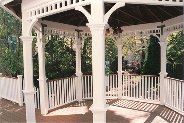 This home was renovated in two phases. This home experience a flood and we performed and extensive repairs. We installed new plaster and new wood floors throughout. Wainscoting was installed in the master bed room and new tiles were laid for the hearth. A few years later we were called back to build the gazebo and deck addition. |