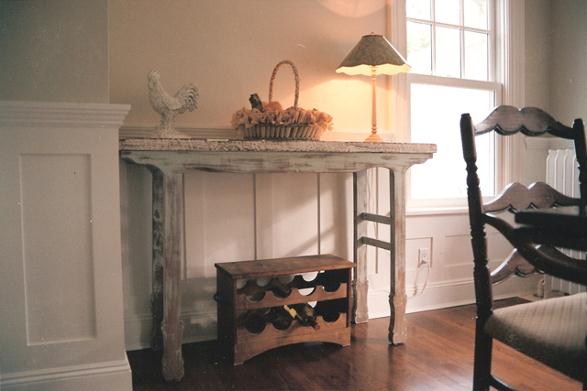We modeled this table after a magazine clipping that the customer provided us. Table skirt and legs were milled from maple. The table top was custom built from two inch thick aged yellow pine. The finishing consisted of staining all the wood, painting the surfaces, distressing all the surfaces and then applying a clear coat protective finish. |